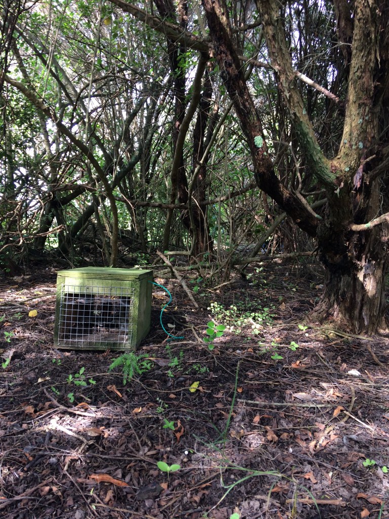 Här och var finns även fällor för de råttor, pungråttor och hermeliner som även de är invasiva och äter upp fåglar och ägg. Ändå en viss lättnad att fällorna alltid varit tomma när jag varit där.