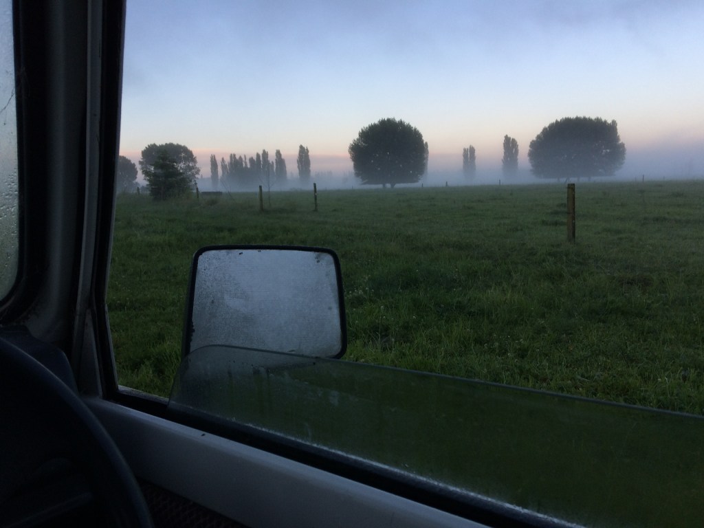 Karl och Caroline är i dryga 40-årsåldern och har fem barn, varav tre bor hemma. De har ganska nyligen köpt gården av Karls föräldrar. Deras grej är ekologisk mjölkproduktion, och de har 200 kor som dagligen mjölkas två gånger – kl. 5 och 15. Tillsammans med Karl och en fransk wwoofare som bor här en längre tid har jag gjort denna upprepade procedur. På så vis får Caroline mer tid att umgås med sina barn före och efter skolan. Det är ett litet ställe det här, Galatea. Det är inte ens någon by att tala om, bara en väldigt stor och platt dal med hus utspridda med någon kilometers mellanrum. Nästa år kommer två av barnen flytta hemifrån och börja skolan i närmsta större stad, så Caroline vill umgås med dem så mycket som möjligt medan hon kan.